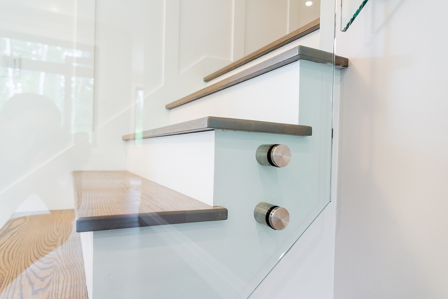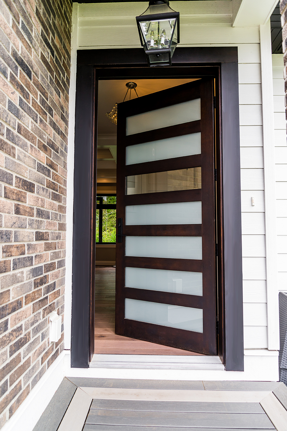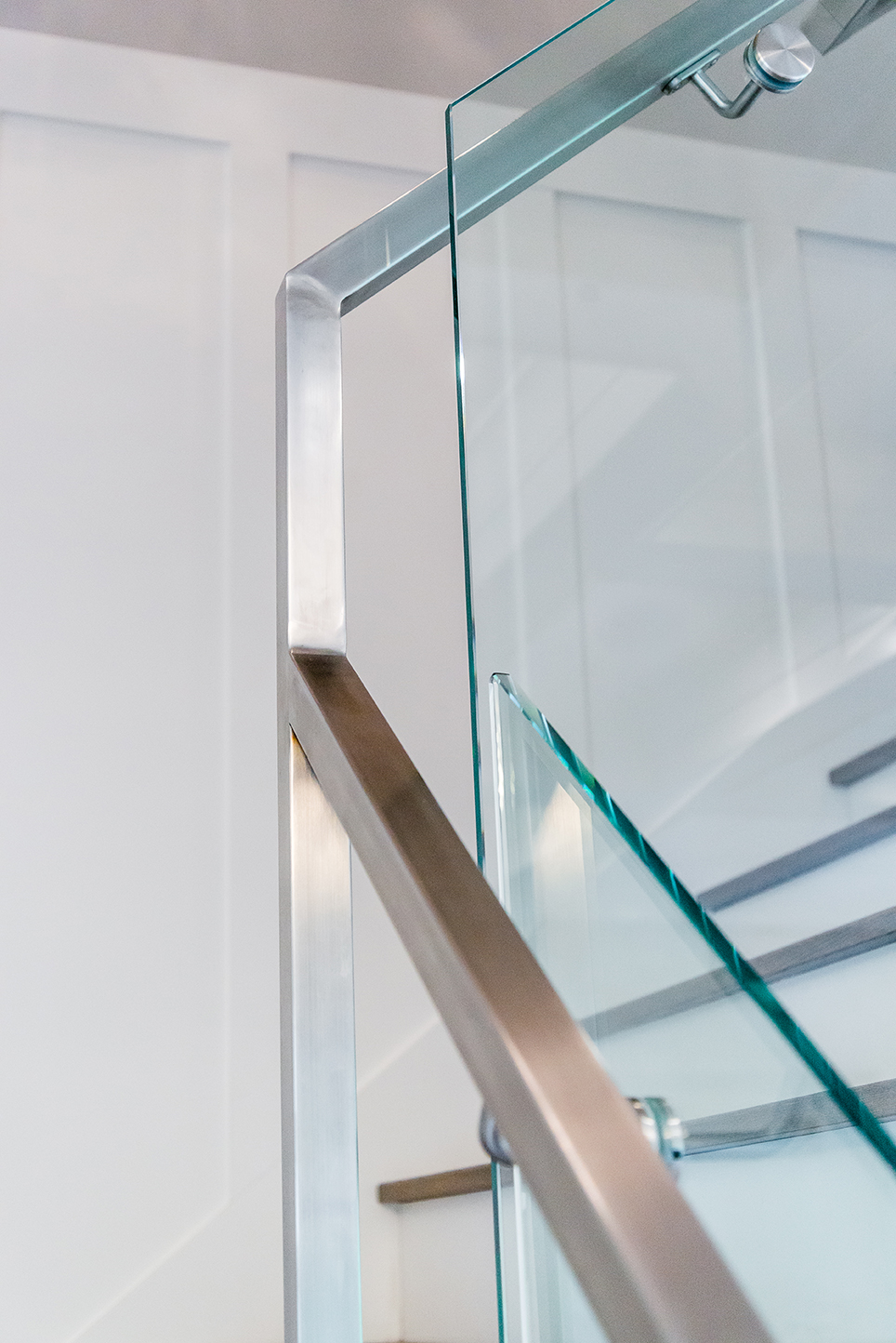 We can’t forget to mention the striking architectural stairs featured in this open-plan space. Visible upon entry, the clean lines, glass and chrome hardware are a true modern statement. No detail was missed while building this 5 bedroom, 3.5 bath luxury home.